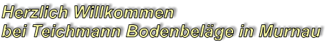 Teichmann Bodenbeläge ist seit 1980 in Murnau am Staffelsee tätig. Gerne beratenwir Sie kostenlos und unverbindlich bei Ihnen Zuhause.Unsere Erfahrung hat gezeigt, dass eine Beratung vor Ort viele Vorteile für den Kundenbringt:- Eine Farbauswahl in den eigenen vier Wänden,- Muster können an bestehenden Möbeln und Gardinen gehalten werden,- eventuelle Höhenunterschiede werden sofort erkannt,- Vermessung der BodenflächeTreffen Sie eine kleine Vorauswahl, welche Muster Sie gerne sehen würden. Zuhause haben Sie die nötige Ruhe sich diese anzusehen.Gerne erstellen wir Ihnen kostenlos bis zu 3 Angebote. Wir liefern und verlegen Bodenbeläge aller Art, leiten gerne andere Arbeiten an die zu-ständigen Handwerker weiter und arbeiten mit diesen “Hand in Hand”.Haben wir Ihr Interesse geweckt ? Dann rufen Sie uns einfach an !Wir freuen uns auf Ihren Anruf ! Tel. 08841 - 32 70In der Regel benötigen wir für ein Angebot nur 1-2 Werktage.Durchsuchen Sie unsere Webseite nach weiteren Informationen zu Teichmann Bodenbeläge. Wenn Sie Fragen haben oder eine Beratung wünschen, können Sie uns auch per E-mail erreichen: teichmann-bodenbelaege@gmx.deBei Teichmann Bodenbeläge steht der Kunde immer an erster Stelle.HomeBodenbelägeSchmutzfangReinigungServiceKontaktImpressumLängenfeldweg 65 82418 Murnau Tel.: 0 88 41 - 32 70